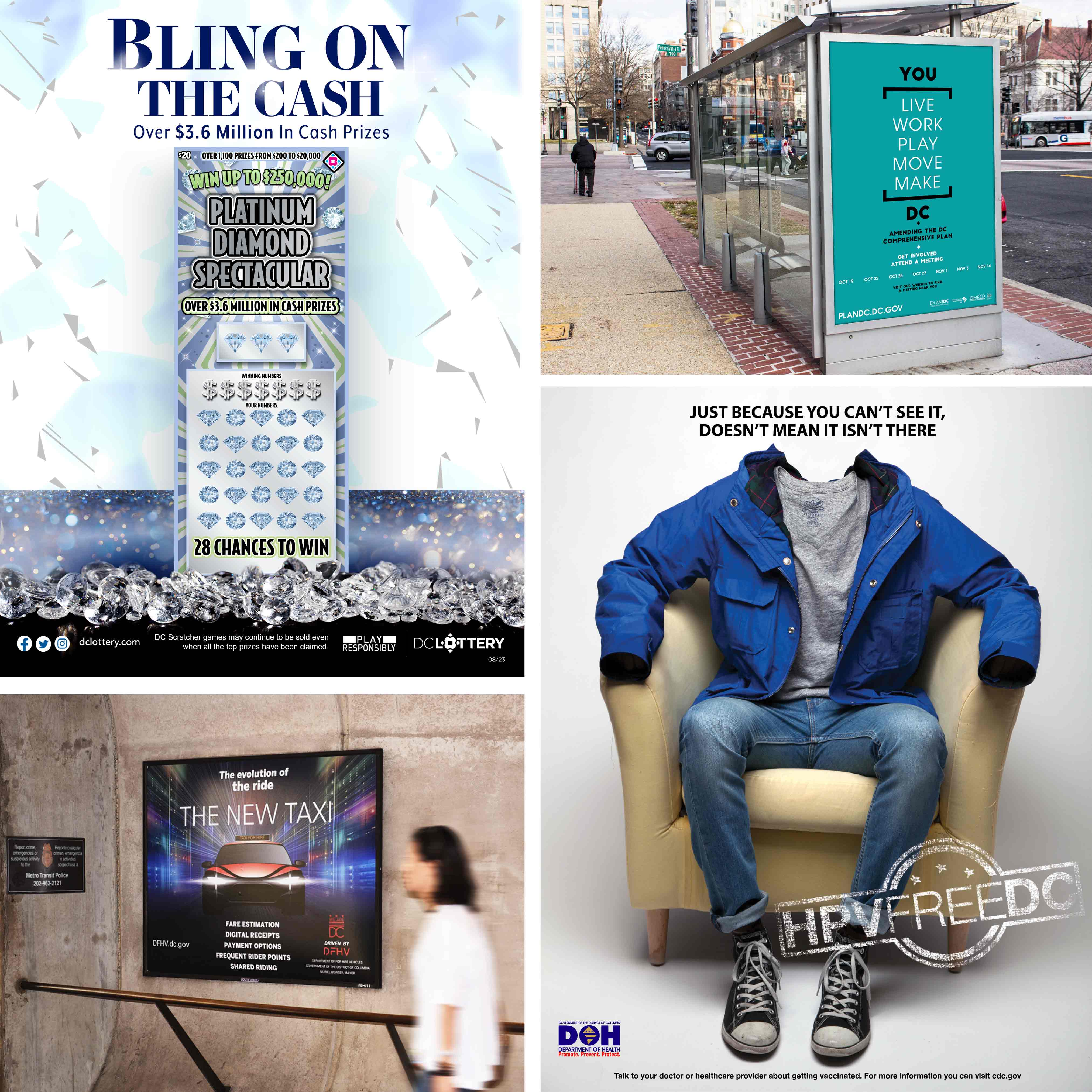 From point of sale posters, brochures and event posters, to social media assets, videos and more, we’re collaborating with the DC Lottery to create work that speaks to the bold character of DC and its surrounding areas.