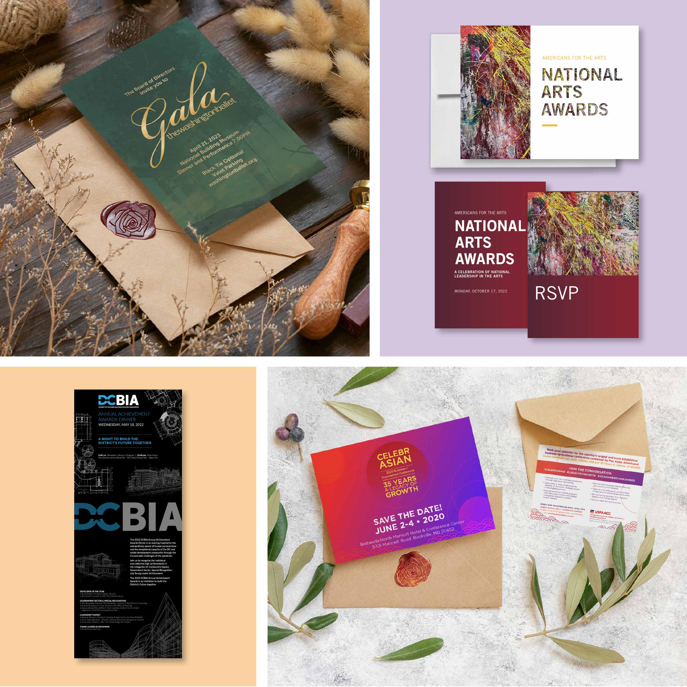Our team partnered with the Washington Ballet to set the stage for a night to remember with enchanted forest themed print and digital invitations, as well as a virtual save the date video that gave guests a snake peak of the event’s energy and excitement.